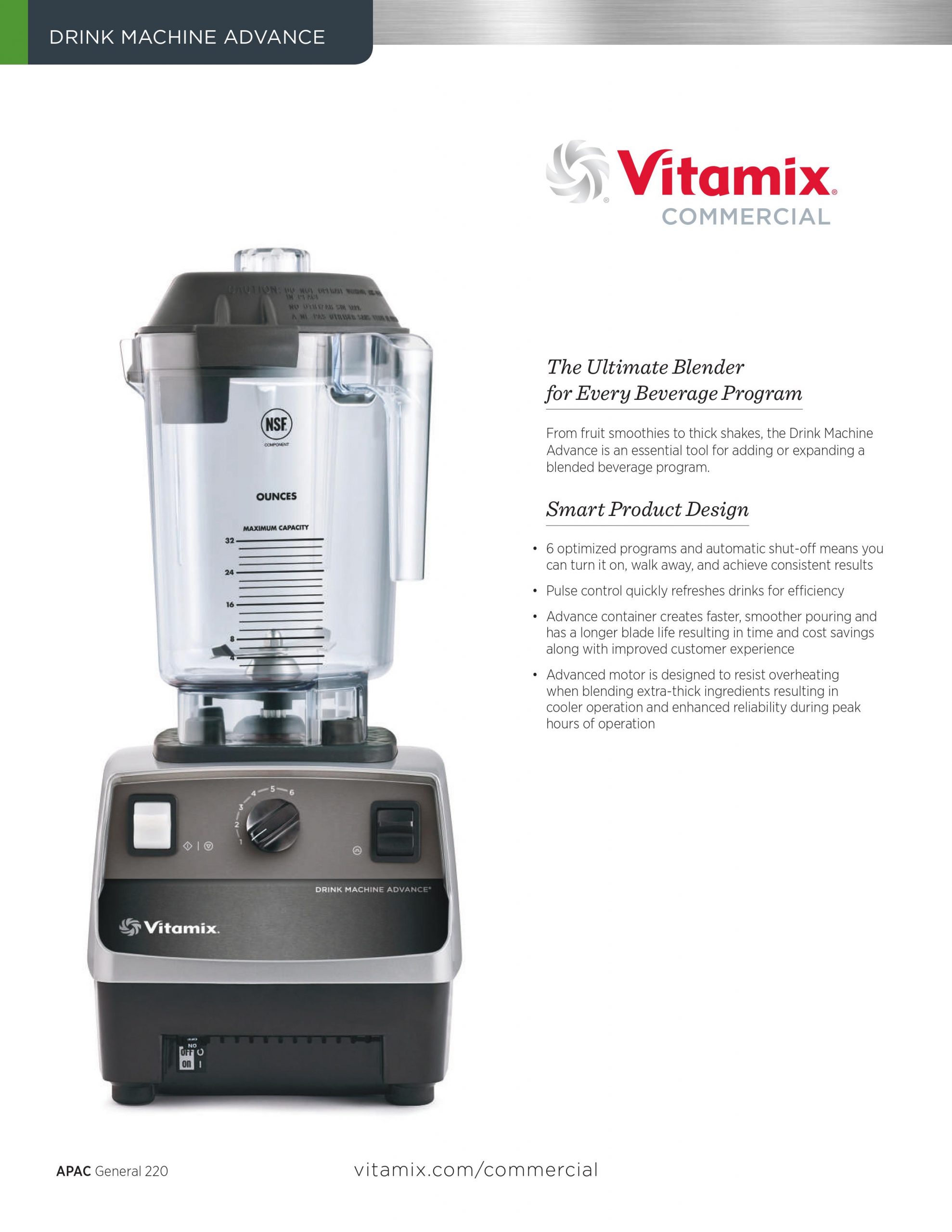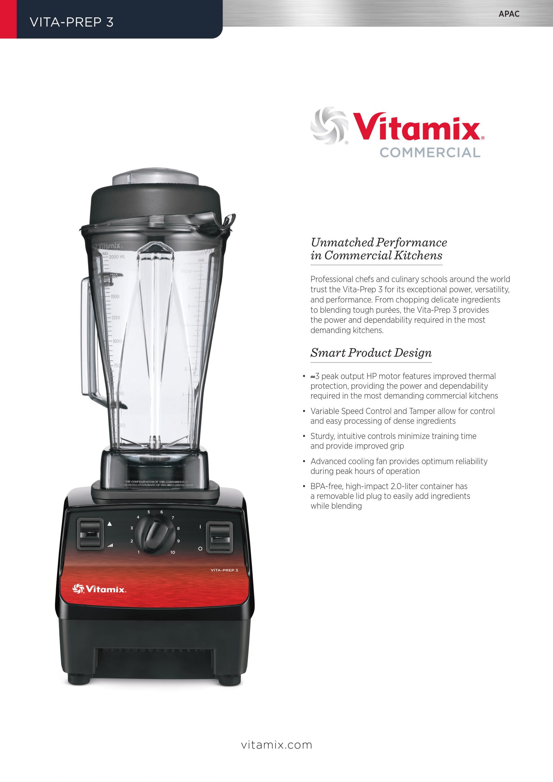 Vitamix Our premium engineering plus standard 3-year warranty will go the distance in your food or beverage operation.